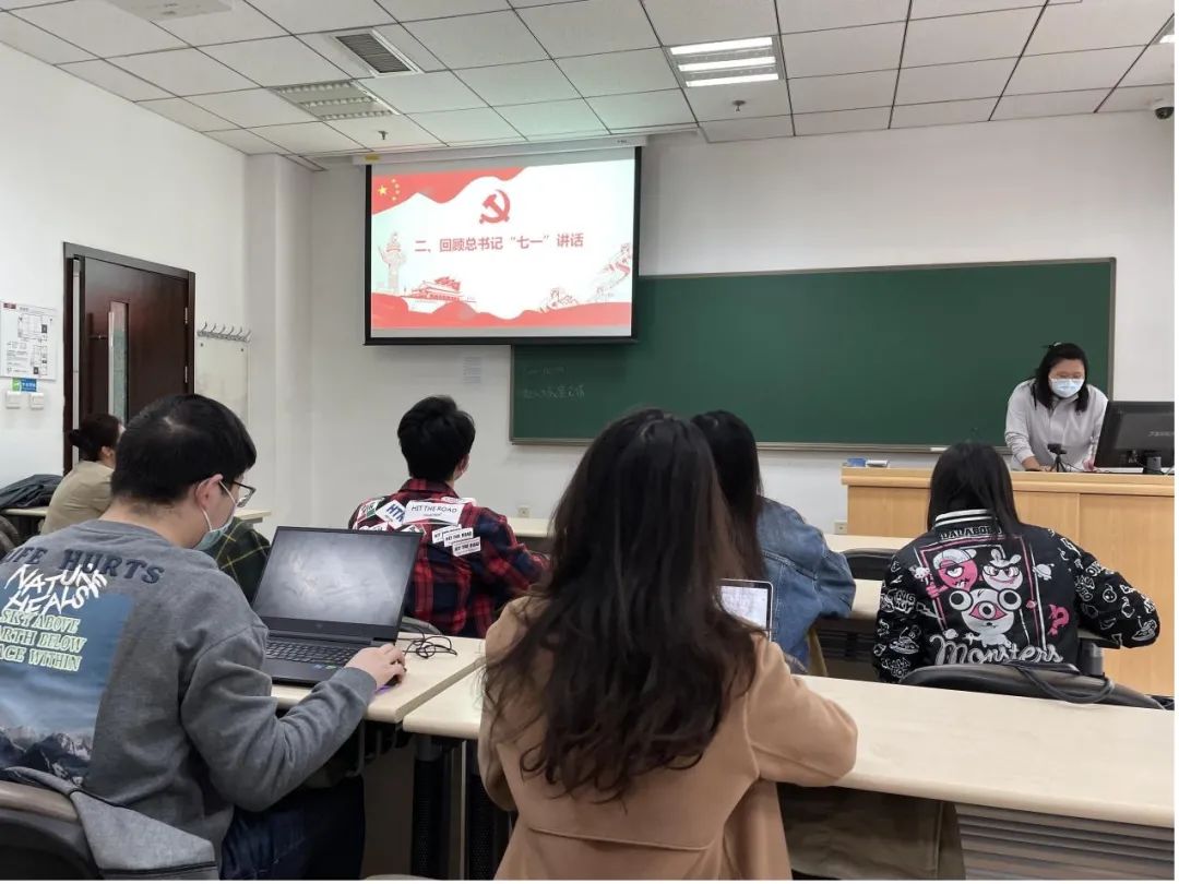 首先支部书记徐艺珊带领大家回顾了总书记的“七一”重要讲话。习近平总书记在庆祝中国共产党成立100周年大会上的讲话中,庄严宣告全面建成小康社会目标的实现,全面回顾了中国共产党百年奋斗的光辉历程,高度评价了一百年来中国共产党团结带领中国人民,为实现中华民族伟大复兴作出的伟大历史贡献,精辟概括了党在百年奋斗中形成的光荣传统和革命精神,系统总结了党在百年奋斗中积累的宝贵经验和实践启示,深刻阐明了在新征程上推进党和国家事业发展的一系列重大问题。总书记要求全党继续弘扬光荣传统、赓续红色血脉,永远把伟大建党精神继承下去、发扬光大;号召全体党员继续为实现人民对美好生活的向往不懈努力、为党和人民争取更大光荣。