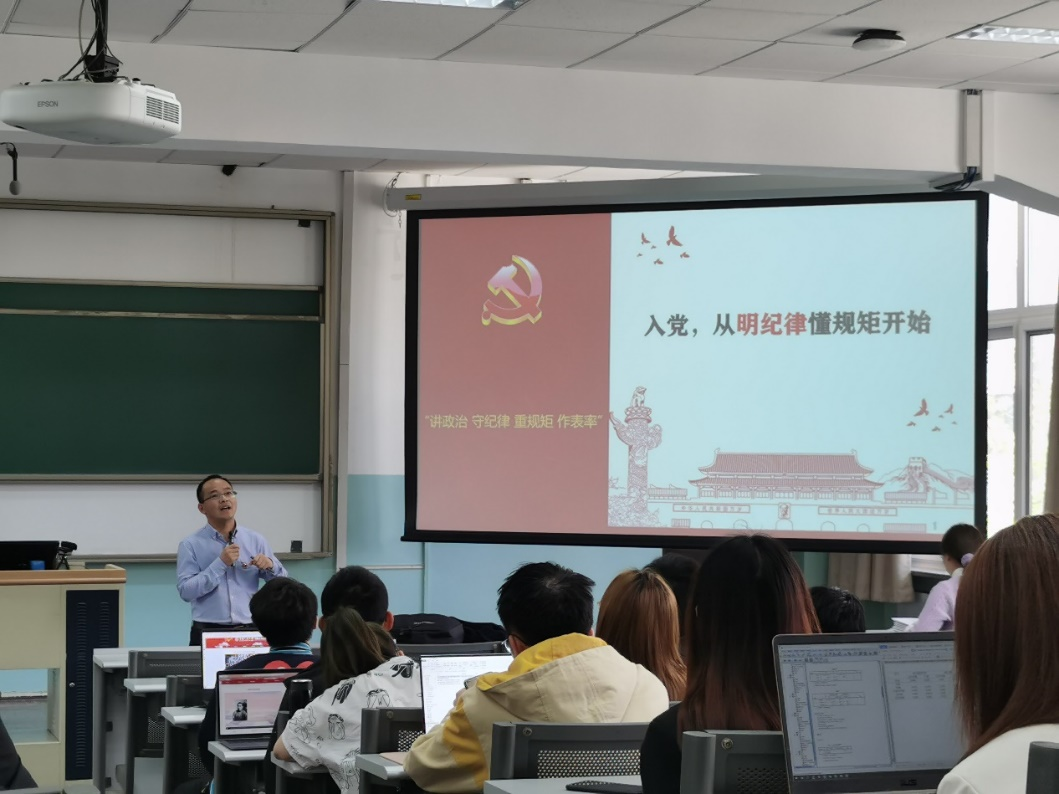 2021-04-30 文:WilliamHill中文官方网站 图:WilliamHill中文官方网站2021年4月28日下午两点,社会与人口公司第23期党校入党积极分子培训班第三次课在求是楼0224教室顺利进行。本次党课的主讲人是公司纪检委员巫锡炜老师,党课主题是“入党,从明纪律懂规矩开始”。