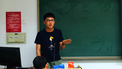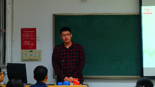 随后,常务副会长张捷致欢迎辞。首先他介绍了党促的主要架构、各部门的职责以及主要活动。随后,他讲到党促的发展问题,强调了人对一个组织的重要性,并对大家提出了三点期望:一是脚踏实地,二是勤于思考,三是敢说真话。最后他衷心祝愿每个人都能在大学开启新的篇章,在党促锻炼能力的同时收获情谊。