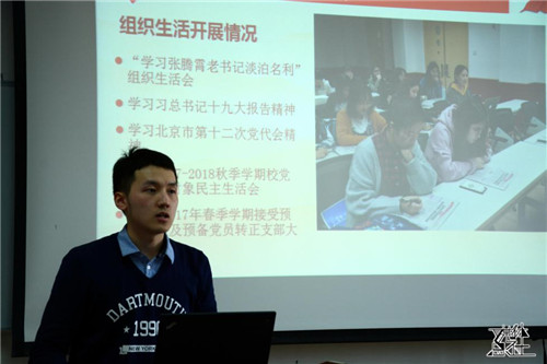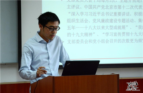 之后进行述职的是2016级人口硕士党支部书记刘思园。她在介绍了支部支部的整体情况后,提出了本支部活动内容丰富的优点,以及与专业联系不够紧密的不足。党委委员巫锡炜在点评中充分认可了支部书记的能力,赞扬支部成员切实做到了“仰望星空,脚踏实地”,并指出对于该支部成员即将毕业的现实情况,建议他们在做好毕业准备工作的同时不忘关心国家大事,积极参与支部活动。