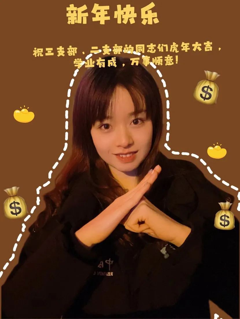 支部党员们手写新春祝福,以照片或视频的形式献上新春祝福。三支部的刘芷桐同志的新年祝福语这样写道“愿我们早日战胜新冠、平安健康、顺遂幸福地度过虎年!”,三支部的晏雨琦同志祝福大家:“大家新年好呀!祝大家新的一年平安健康,万事胜意,天天开心!”二支部的管晓方同志写道“希望同志们在新的一年能以虎虎生威的雄风、生龙活虎的干劲、气吞万里如虎的精神共谱新篇,不断向前!”。