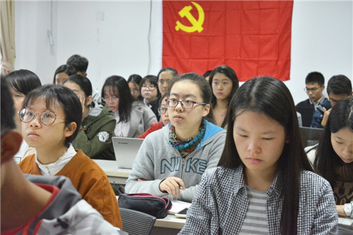 在学习十九大开幕式习近平讲话的过程中,在会场参与集体学习的老师同学们展开了热烈的讨论,对讲话中提出的新形势、新观点、新问题进行了交流,尤其是对我国社会主要矛盾的转变进行了学习和分析。