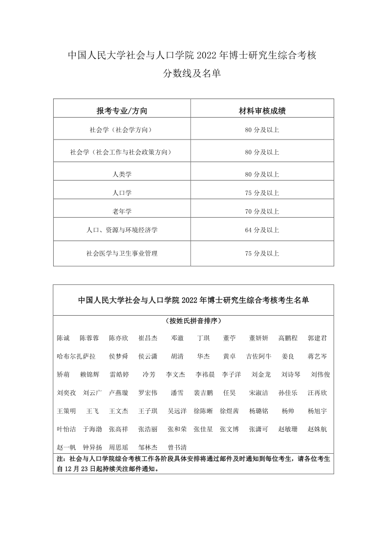 williamhill官方网站社会与人口公司2022年博士研究生综合考核分数线及名单