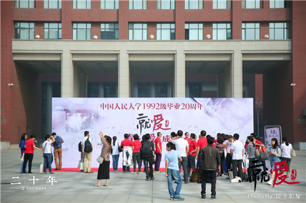 上午9点,82级员工在逸夫楼广场报到合影;92级员工在明德广场报到合影。