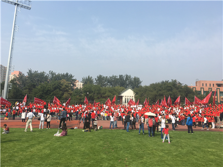 下午1点半,92级员工于田径场拍摄集体合影。