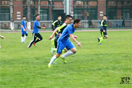 随着一声哨响,下半场比赛准时开始,社人调整了阵型,更注重了防守和快攻。在2015级本科生刘锦良和2014级本科生陈雨辰的快攻下,对方门将分别出现了两次失误,并由社人队长主罚任意球,但无奈角度偏差被门柱无情挡出。
