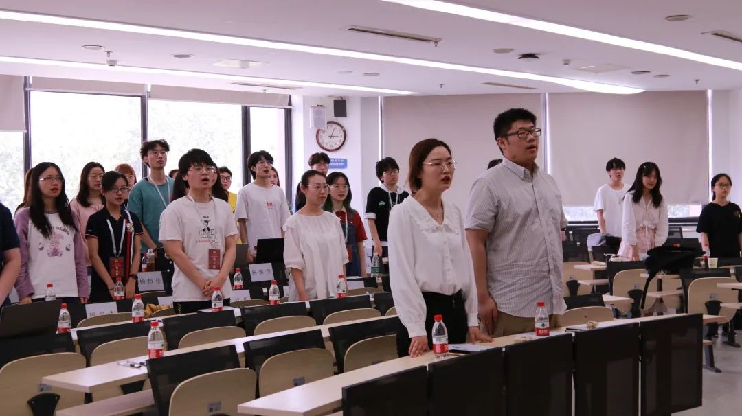 会议伊始,全体成员起立,奏唱国歌。