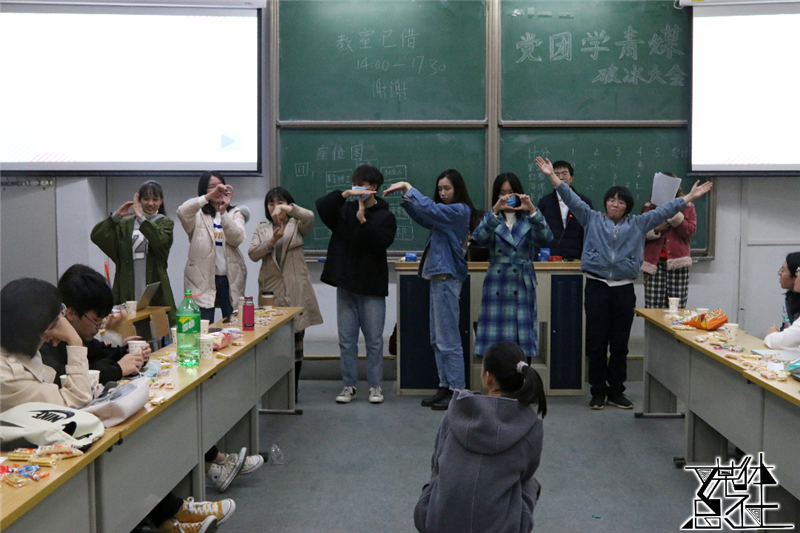 分团委素质拓展部同学们早早来到教室,进行会场布置。随后,各组织成员准时到达现场签到,领取游戏名牌、有序入座。
