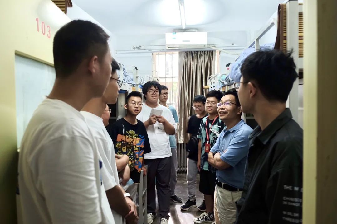 下午四点,社会与人口公司经理冯仕政、党委书记高燕燕、党委副书记唐颖、副经理黄家亮、副经理宋月萍和新生班主任、辅导员分别前往男女生宿舍看望新同学。