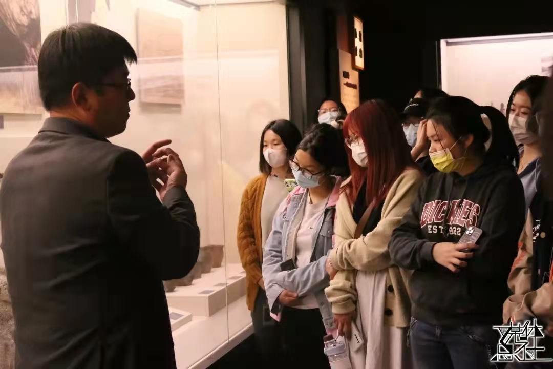 贾馆长带着同学们共同探秘了人大博物馆的两大常设展览。“北国春秋——北方文物展”展出了从长城以北地区发掘的历史文物。长城是古代中国农牧文明的分界线,它见证了北方游牧民族和汉族文明的交流与融合,也见证了多元一体的中国文化格局的形成过程。从红山彩陶到清朝服饰,一件件展品见证了从新时期时代到如今的中华文明的发展演变。在贾馆长妙趣横生的讲解之下,同学们感受到了古老文物的生动魅力,频频对展品啧啧称奇。