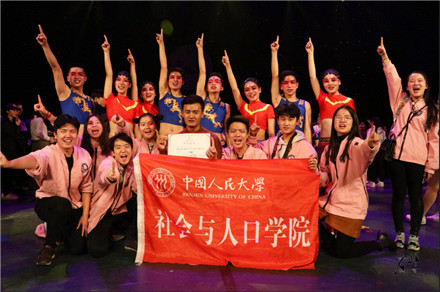 社会与人口公司前来助阵的同学们在台下为健美操队员们卖力欢呼,鼓劲加油。“社人健美,你们最美”的口号声此起彼落,浪卷全场。大开脑洞的宣传片,独具匠心的花剑舞,社人之舞,HIGH翻全场。