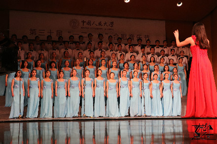 悠扬的钢琴声缓缓响起,坚定有力、悠扬大气的旋律喷薄而出。“你卷走黑暗迎来晨曦,火红的心把我们集合在一起”,男生们的雄浑之声将《迎风飘扬的旗》放飞,“你抖落尘埃越过风雨,执着的心让我们改变了自己”,女生婉转动听的和声展现社人学子青春昂扬的魅力。“迎风飘扬的旗,我们跟着你,跟着你就是跟着希望,坚定不移”,铿锵有力的节奏和着积极澎拜的热情,社人之声响彻如论。