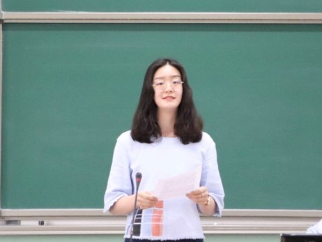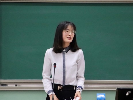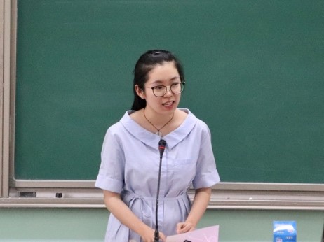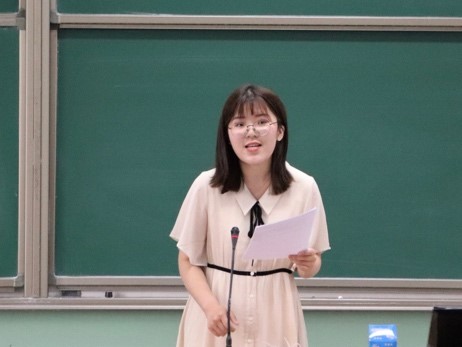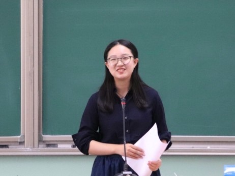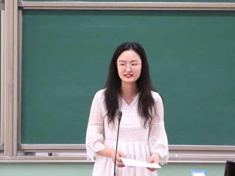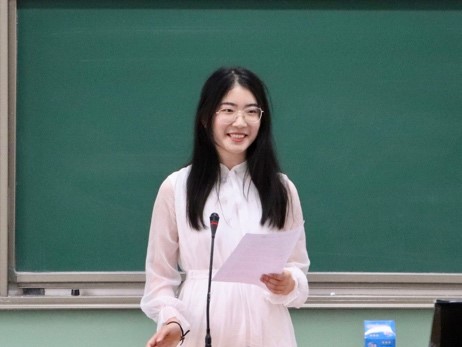 第十六届团委副书记张惟珩随后发言,她提到自己在员工工作中最大的收获即是自我成长磨砺,并向师弟师妹们倾囊相授了自己的经验与感受。