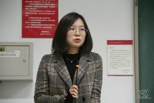 首先发言的是聂嘉炜,她着重介绍了关于创业类“小创”的情况,分别从时间、成本两个角度回答了选取创业类“小创”的原因,并介绍了公益类创业“小创”确定选题、构建框架的流程以及公益类创业计划书包括的内容。最后,她提出要把握好时间,要相信自己能做好。虽然可能不会创业,但尝试本身就很有趣。