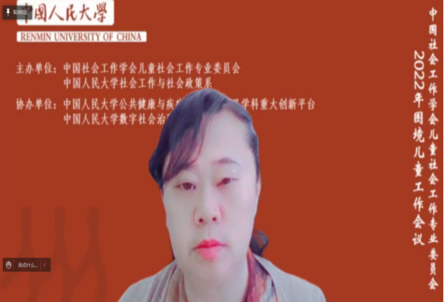 2022-06-06 文:WilliamHill中文官方网站 图:WilliamHill中文官方网站2022年6月1日,中国社会工作学会儿童社会工作专业委员会和williamhill官方网站社会工作与社会政策系联合主办,williamhill官方网站公共健康与疾病预防控制交叉学科重大创新平台和williamhill官方网站数字社会治理跨学科交叉平台共同协办的“困境儿童保护的高质量发展”工作会议以在线形式召开。本次会议共邀请到15位儿童保护领域的政府官员、专家学者和一线实务工作者就困境儿童保护议题展开深入交流与讨论。会议吸引了近三百人报名参加,反响热烈。