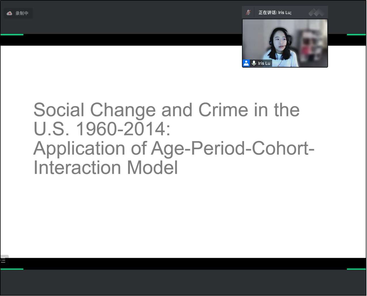 卢韵媚博士本次讲座分享的研究聚焦于美国犯罪率在年龄、时期和队列视角上的变迁,利用美国联邦调查局统一犯罪报告(FBI Uniform Crime Report)1960-2014年数据,基于APC-I(Age-Period-Cohort-Interaction)模型对美国暴力犯罪率和财产犯罪率的社会变迁进行了详细的分析。卢韵媚博士首先对美国社会学领域犯罪学研究进行了简单的介绍,从而引出自己讲座的主题:人口学方法在犯罪学中的应用。接着卢韵媚博士对年龄效应、时期效应和队列效应进行了详细的解释:年龄效应是指随着时间的推移,年龄增长的普遍影响,例如随着年龄的增长死亡风险会增加;时期效应是影响所有群体的社会和历史变化;队列效应是其研究关注的重点,出生在相同年份的人受到在特定时期和特定年龄经历相同事件的独特影响。由于年龄、时期和队列存在完全共线,无法很好的分析犯罪率的三种效应,传统的APC模型也存在不少缺陷,APC-I模型较好的解决了传统模型存在的问题并且能够更加深入地分析队列效应。结果分析中,年龄效应发现犯罪风险随着年龄的增长而下降,财产犯罪的高峰年龄区间(15-19岁)要低于暴力犯罪的高峰年龄区间(20-24岁)。时期效应发现美国暴力犯罪趋势在上世纪六七十年代呈现上升趋势,八十年代后下降;财产犯罪自二十世纪六十年代以来呈现上升趋势,八十年代达到高峰后保持稳定。队列效应发现在二十世纪八十年代和九十年代出生的人在到达主要犯罪年龄后有较高的杀人犯罪风险。而婴儿潮一代,特别是婴儿潮后期出生的人(出生于六十年代)卷入财产犯罪的风险更高。