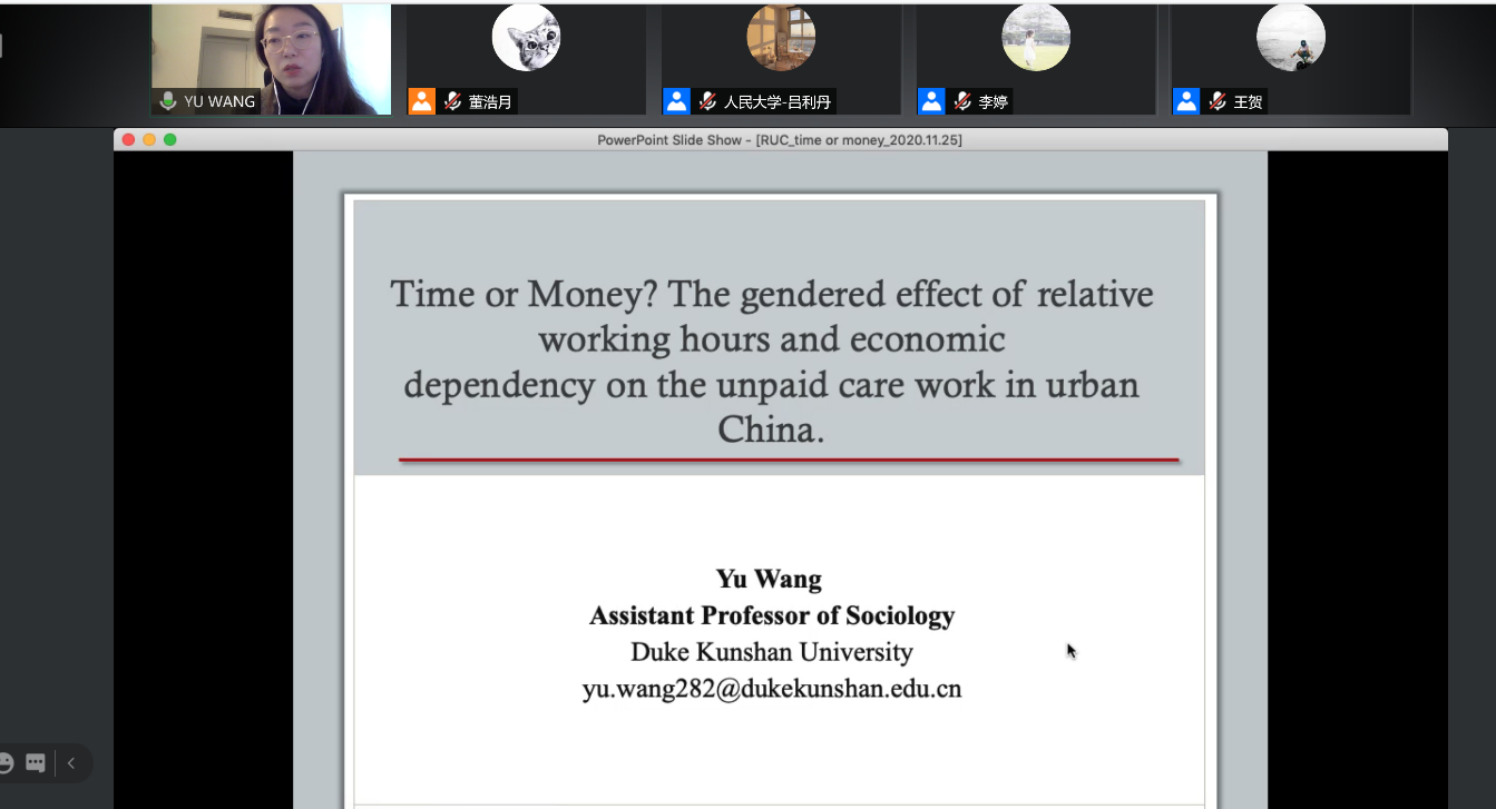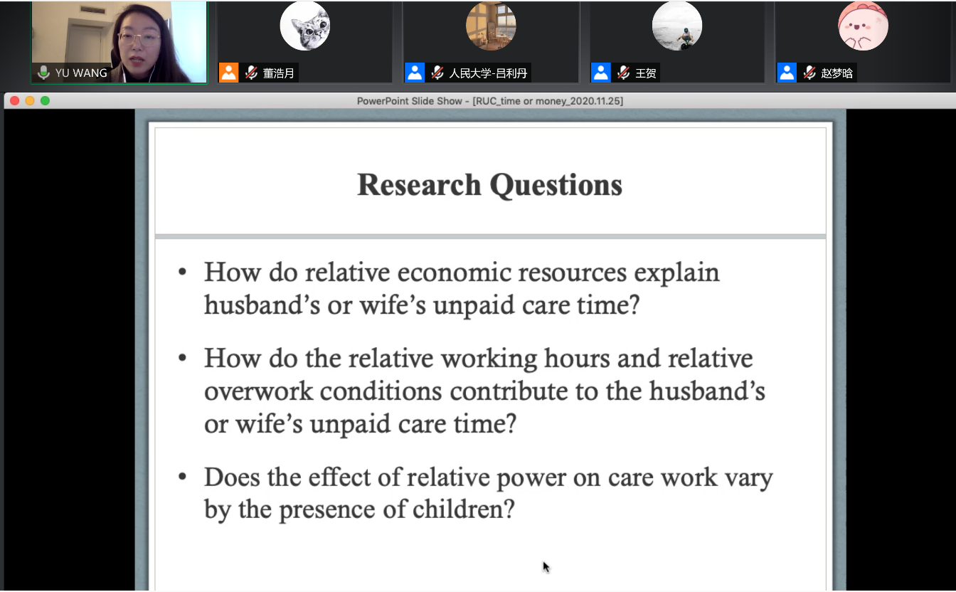 讲座回顾 | 王宇:Time or Money? The gendered effect of relative working hours and economic dependency on the unpaid care work in urban China