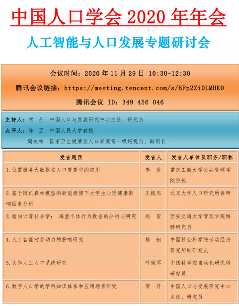 会议预告 | 中国人口学会2020年年会