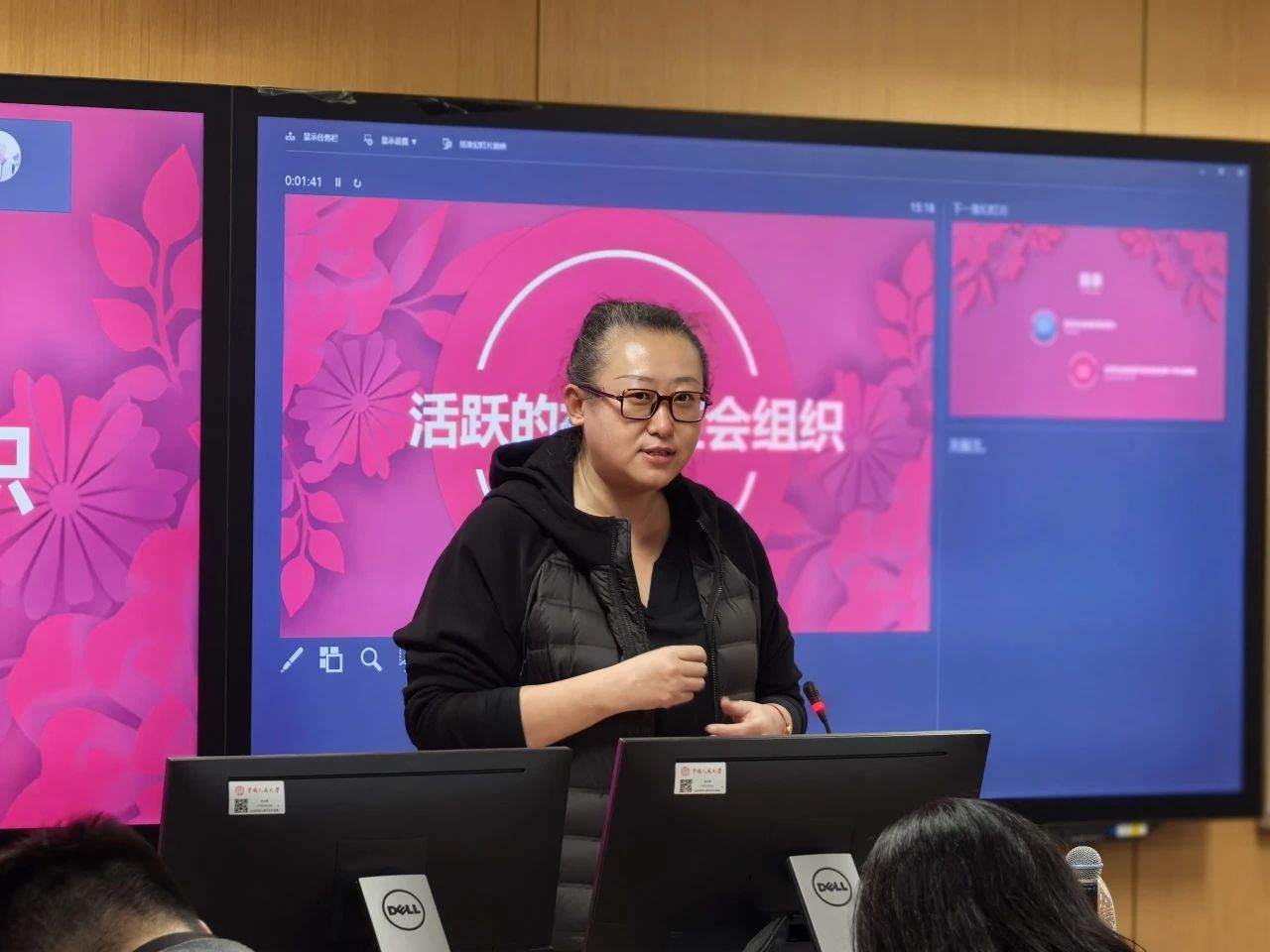东城区建国门街道社工服务中心主任杨倩做了“活跃的社区社会组织”为题的分享。她以“社区好声音”为例,介绍了社区文体团队的活力和作用。她指出,在社区服务当中,更多的是要从居民的兴趣出发,吸引热情、有活力的人,发挥居民的能动性。接着,她就如何为社区组织赋能展开了介绍,包括参与社区文体活动、内部建设促进组织活力、增加出镜率、组织多元化等做法。杨老师还介绍了老年协会、老年公司、红线联姻、义务理发、夕阳为老等活跃的社区社会组织和楼院自治案例、老友会客厅服务、微视记录者、赋能益学等专业服务,展示了社区社会组织创意策划、群力共举的力量。