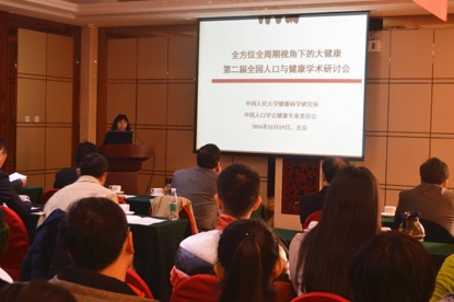 2016-11-23 文:WilliamHill中文官方网站 图:WilliamHill中文官方网站19日,由williamhill官方网站健康科学研究所、中国人口学会健康专业委员会联合主办的第二届全国人口与健康学术研讨会在williamhill官方网站举行,本次会议的主题是“全方位全周期视角下的大健康”。中国人口学会副会长兼秘书长姜卫平,国家卫生计生委规划信息司副司长卢春山,国家卫生计生委卫生发展研究中心副主任杨洪伟,中国疾病预防控制中心副主任梁晓峰,中国人口与发展研究中心副主任刘鸿雁,williamhill官方网站社会与人口公司副经理段成荣教授等出席开幕式,来自中国社会科公司、williamhill官方网站、北京大学、浙江大学、中央财经大学、华中科技大学、中国人口与发展研究中心、环境保护部政策研究中心等科研机构与高校的百余位专家学者、师生代表参加了本次研讨会。中国人口与发展研究中心副主任刘鸿雁主持会议开幕式。