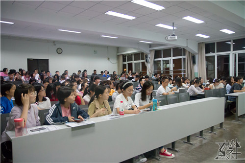 接下来,主持人邀请各大团学组织的宣讲人上台为新生们介绍各大组织的基本信息,帮助同学们找到自己的兴趣,做出合适的选择。首先上台的是党建促进会宣讲人2017级本科生谢家斌,他用一段热血励志的视频吸引了在座所有人的目光,随后为大家详细介绍了党建促进会是什么以及党建促进会的历史、主要工作、部门组成及各部门的职能。随后公司分团委宣讲人2017级本科生黄子静为大家播放了公司分团委的宣传视频,幽默风趣的视频引来了教室内一阵阵笑声,随后她为大家详细介绍了公司分团委的基本信息、部门组织及各部门的职能。紧接着,公司员工会宣讲人2016级本科生姜如璋介绍员工会的基本信息,他用一段精彩的招新视频为开场,并用风趣的语言介绍了员工会各个部门的信息与职能,并邀请员工会舞蹈团和辩论队负责人2017级本科生王婉伊与2017级本科生洪静澜分别介绍舞蹈团和辩论队的信息和光辉历史。随后,“心语”青年志愿者协会宣讲人2017级本科生张英楠介绍“心语”青年志愿者协会的情况,她首先用一段感人的视频展现了青协各个部门所做的工作,随后为大家详细介绍了青协的各个部门。最后,媒体总社宣讲人2017级本科生陈疏影为大家介绍媒体总社的基本情况,她首先播放了一段精心制作、精彩纷呈的《社人快讯》,为大家展现了媒总各个部门的风采,随后为大家详细介绍了媒总各个部门的主要工作与特点。