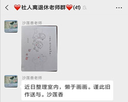 在社人离退休老师群里,老师们互相问候、叙说旧事、暖意融融,形式多样的才艺展示更是将活动气氛推向了高潮。98岁高龄的邬沧萍老师通过视频短片向各位老师送来问候,在分享了日常生活的同时也表达了对老师们的想念,希望各位老师能够保重身体,健康长寿;已过耄耋之年的沙莲香老师则分享了自己的画作,给大家送来祝福;远在加拿大的徐思莲老师发来了自己演唱的歌曲;离退休党支部书记姜向群老师为大家演奏了小提琴;于彩军老师则展现了厨神魅力,教大家炒了一道“美味三菇”……老师们纷纷通过歌曲演唱、乐器演奏、绘画摄影展示、收藏展示、视频问候等各种方式,分享彼此的生活,开心共话,迎接春天的到来。