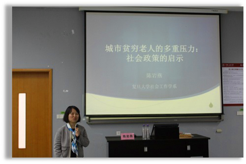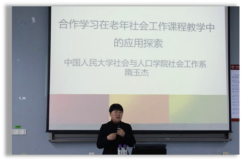复旦大学陈岩燕老师从城市贫穷老人的多重压力角度,结合我国的现实情况,就制定相关社会政策提出了建议。隋玉杰教授基于小组动力学等理论,进行了“合作学习在老年社会工作课程教学中的应用探讨”的演讲,引起了大家的热烈讨论,为老年社会工作课程的教学提供了一个新思路。
