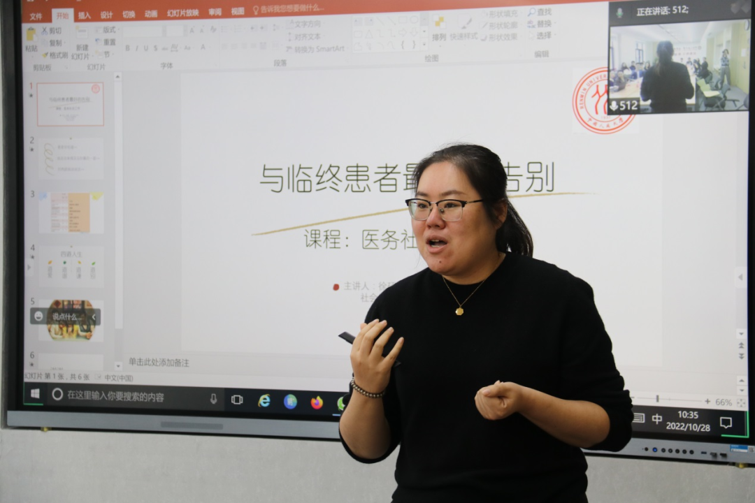 徐硕讲授了主题为“与临终患者最好的告别”的课程。她以实务工作中一位照顾癌症末期母亲的女儿为例引出讲授主题,让听众从感性上理解不及时表达情感可能带来的人生遗憾,说明了从“四道人生”的视角表达情感的重要性,最后鼓励听众可以把四道人生的方式融入生活,珍惜自己的家人和朋友。