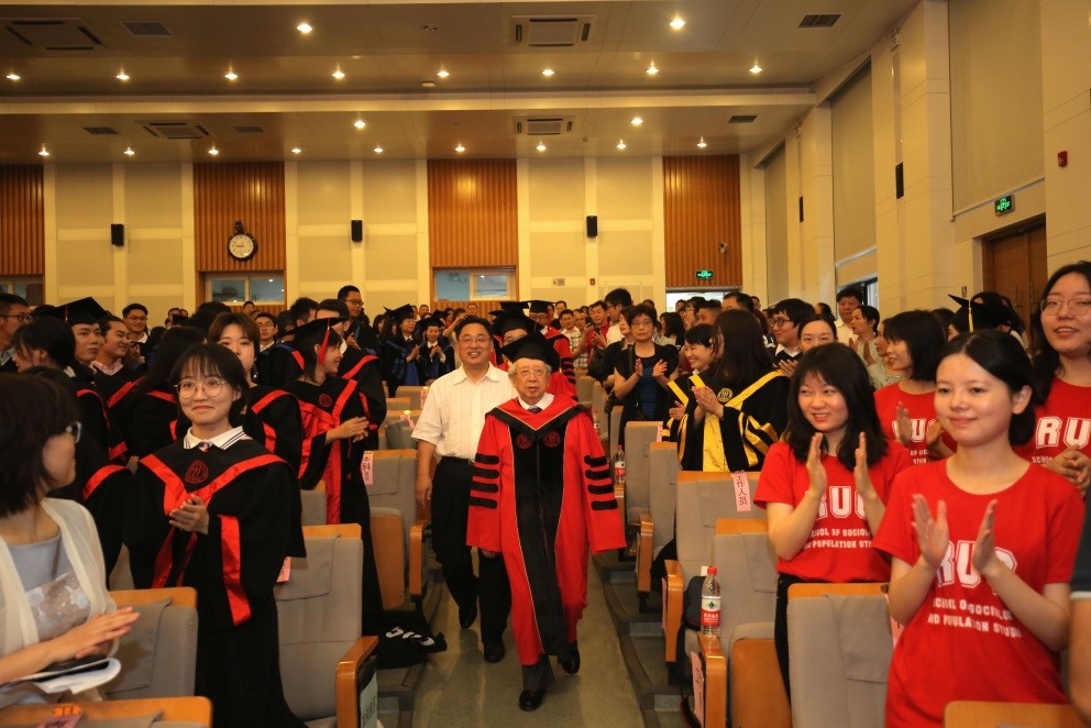 williamhill官方网站荣誉一级教授、著名人口学家邬沧萍,社会与人口公司经理、院学术委员会主任冯仕政,公司党委书记兼副经理、院学术委员会副主任宋健,及其他院领导班子成员、学术委员会成员、资深教授、研究生导师、毕业班班主任和全体2019届毕业生及员工家长代表,共同参与并见证了这一神圣而庄严的时刻。
