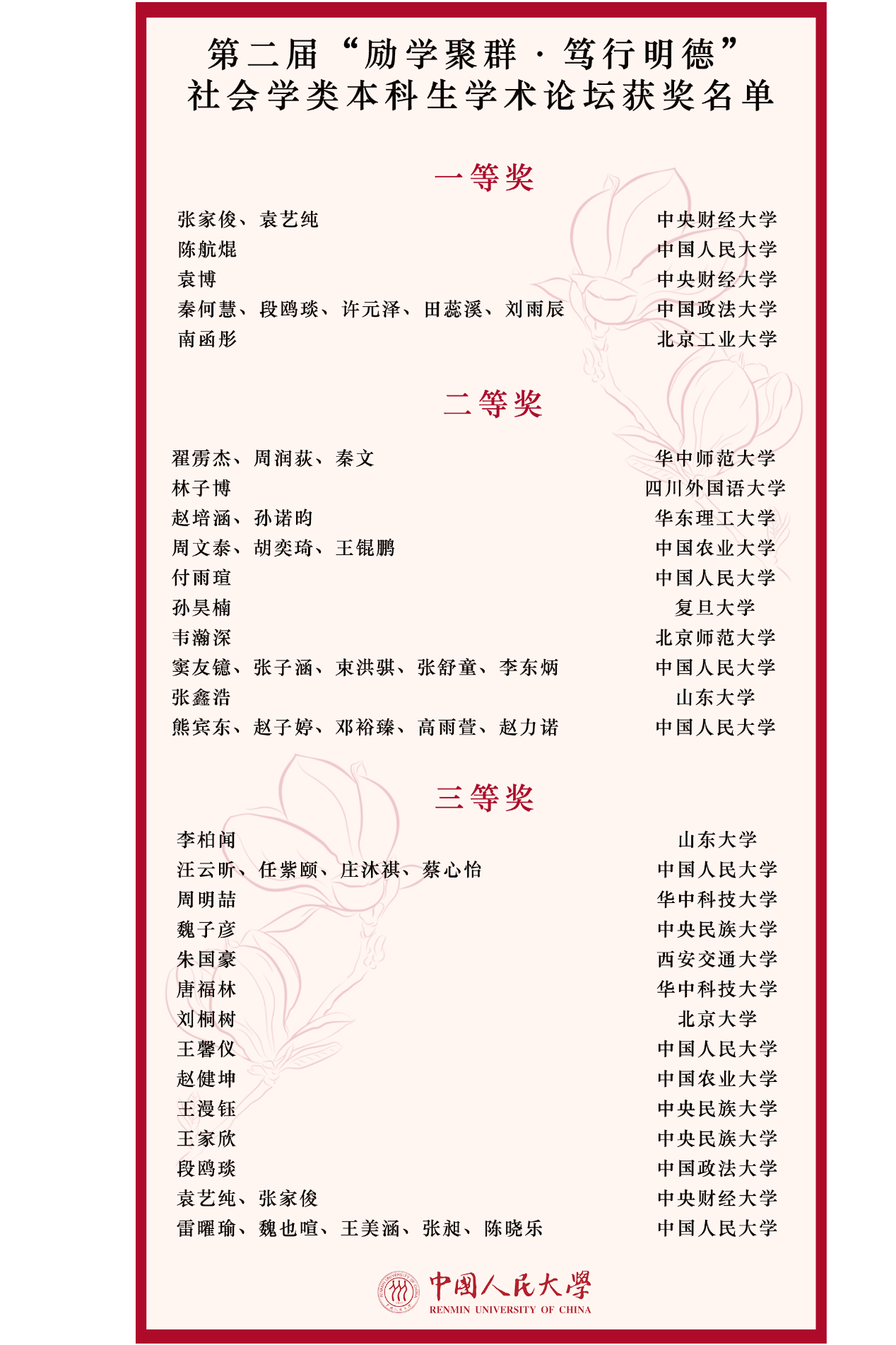 习近平总书记在williamhill官方网站考察时强调,希望广大青年用脚步丈量祖国大地、用眼睛发现中国精神、用耳朵倾听人民呼声、用内心感应时代脉搏,把对祖国血浓于水、与人民同呼吸共命运的情感贯穿学业全过程、融汇在事业追求中。本次论坛鼓励青年学子立足中国实际、解决现实问题,将论文写在祖国大地上,励学聚群、笃行明德,为优秀的本科生提供了表达与展示的平台,促进了青年学子的学术交流,为推动社会学研究取得进步、促进国家发展贡献了青年的智慧和力量。