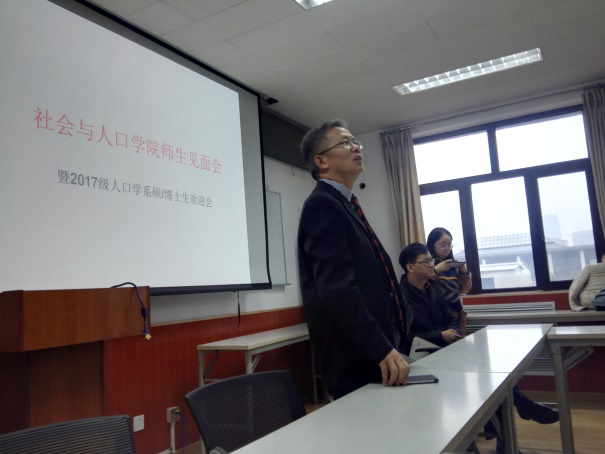 人口学系系主任段成荣教授首先对各位2017级硕士和博士新生们的到来表示热烈的欢迎,对出席的研究生导师们表示致意。段主任接着简要回顾了人口学系的历史,重点介绍了本系一直保留着导师与研究生进行集体交流会的传统,突显了此次见面会的目的和意义。此外,适逢今年是人口学系与英国卡迪夫大学社会科学公司交流项目实质性启动的第一年,段主任对卡迪夫大学博士来本系交换学习的博士生生Ross Goldstone的到来表示欢迎,并指出:公司和系近年来日益推进教学、科研的国际化,不少国际交流与合作项目取得实质性进展,师生外出交流机会日益增多,研究生参与国际交流非常有必要,勉励研究生新生们要积极参与,利用好这些机会,不断提升自己。