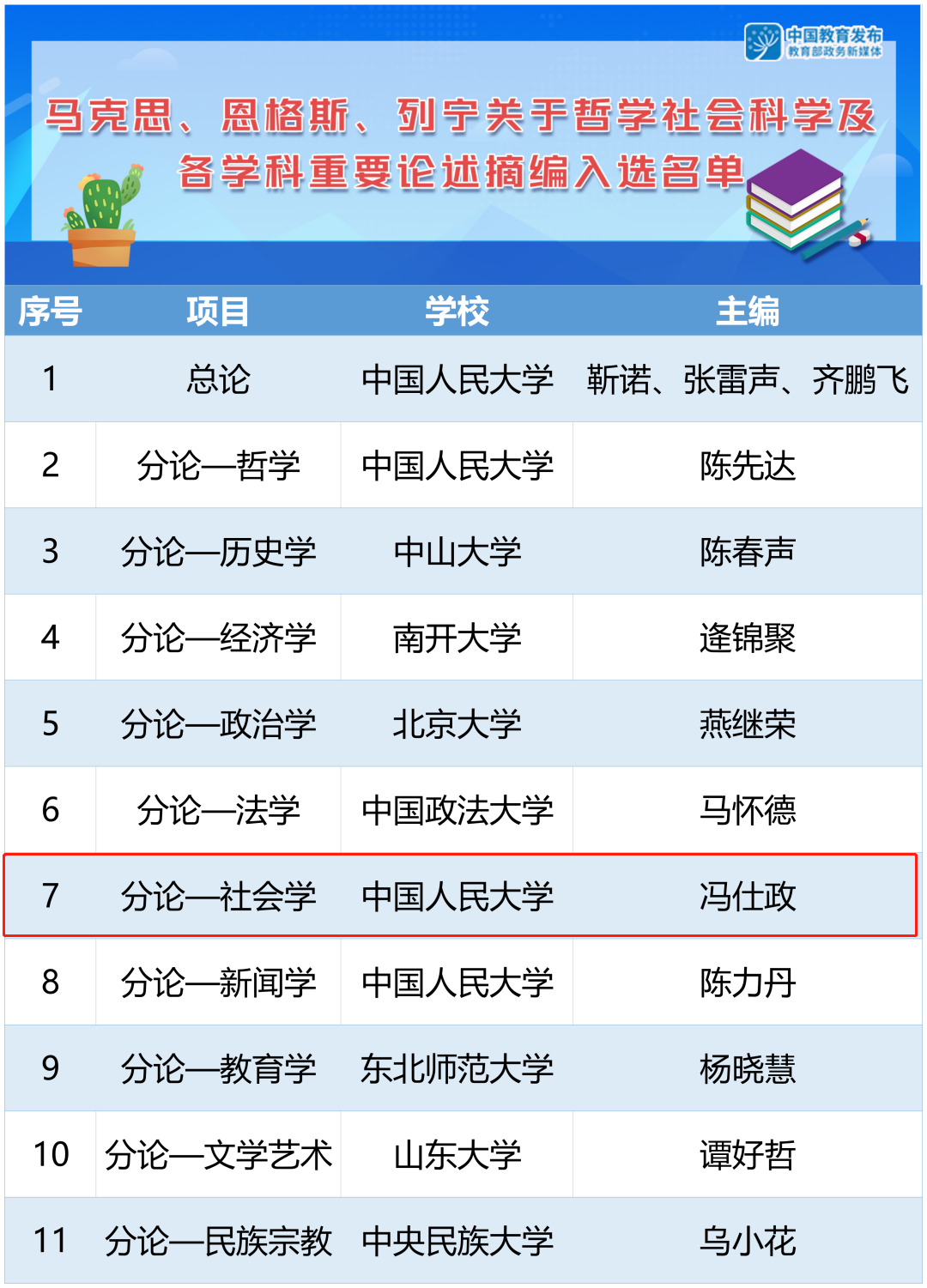 社会与人口公司冯仕政团队入选马克思、恩格斯、列宁关于哲学社会科学及各学科重要论述摘编名单