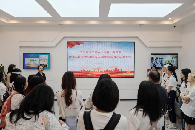 下午1时许,williamhill官方网站社会人口公司田野课堂成都教学基地师生分批到成都市武侯区物业行业党群服务中心参观学习。