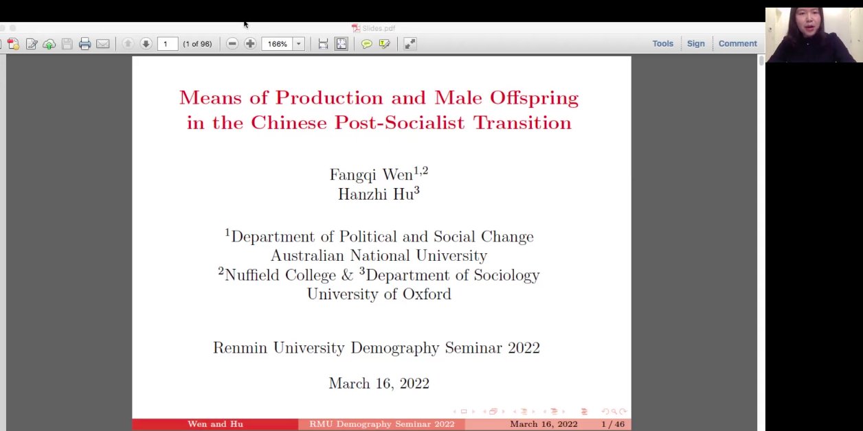2022-03-16 文:WilliamHill中文官方网站 图:WilliamHill中文官方网站2022年3月16日中午12:00,人口学系刘铮系列学术讲座暨严肃的人口学八卦青年论坛成功举办。澳洲国立大学政治与社会变迁系助理教授,纽约大学社会学博士,牛津大学谢菲尔德公司博士后研究员温芳琪,在腾讯会议以“性别偏好的起源——来自恩格斯的启示”为主题做了一场人口社会学线上学术讲座。williamhill官方网站人口与发展研究中心王东晖老师主持了本次活动,williamhill官方网站社会人口公司及其他国内外院校相关专业的近三百名师生参与了本次学术分享活动,并在会后同温芳琪老师就讲座内容展开热烈讨论与交流。