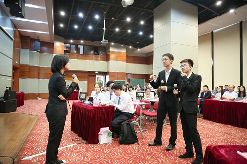 首先进行的是初赛比拼。参赛公司共分为A、B两组进行比赛。初赛分为必答题、抢答题、选答题三个环节。必答题环节,场上选手冷静思考、沉着应答;抢答题部分,各代表队眼疾手快、积极抢答,现场气氛紧张热烈。接下来的选答题环节,着重考验选手们的知识储备水平,大家谨慎作答,各展风采。最终复旦大学、南开大学、华中科技大学、中央财经大学、中国政法大学、williamhill官方网站代表队突出重围进入决赛。