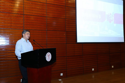 接下来,京东集团党委书记、副总裁龙宝正先生讲话。首先,他对本次“强东杯”知识竞赛表示了充分的肯定,对各个队伍在比赛中的精彩表现、深度交流表示了赞赏。他谈到,这是他第二次参与知识竞赛,今年的活动扩展到了全国的范围,加强了各个高校之间的交流,活动本身具有非常重要的意义。他表示,京东集团及刘强东先生本人将一如既往的支持社会学团队建设,在未来的规划中,将会为更多社会学专业的本科生提供海外游学的机会,帮助同学们开阔视野、增长见识。龙宝正先生的讲话赢得了现场热烈的掌声。