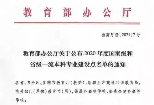 2021-03-05 文:WilliamHill中文官方网站 图:WilliamHill中文官方网站近日,教育部印发《教育部办公厅关于公布2020年度国家级和省级一流本科专业建设点名单的通知》(教高厅函〔2021〕7号),正式公布2020年度一流本科专业建设点名单。