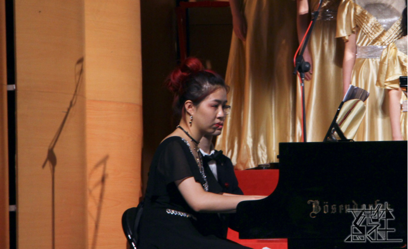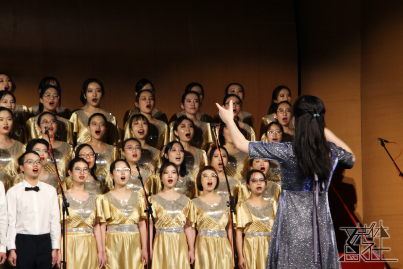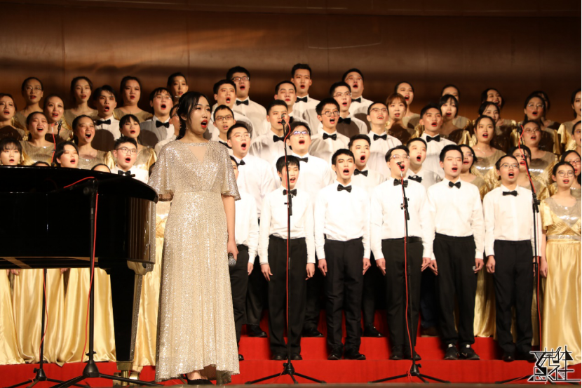 在寂静中,响起教育公司2020级研究生李清煜的“百灵鸟独唱”,婉转动听的歌声中,一曲深情的《我爱你中国》就此展开。大家仔细聆听着钢琴伴奏与2019级本科生张雨欣敲击的鼓点,双眼有神地注视着指挥。先是柔美的女声渐起,再是浑厚的男声渐入,各个声部此起彼伏,相互配合,交相辉映,在空气中混合成美妙动听的旋律,时而悠扬,时而活泼,直到结尾声音渐强音调渐高,最后以一句饱含深情的“我的母亲——我的祖国——”完美收尾,台下响起热烈的掌声。