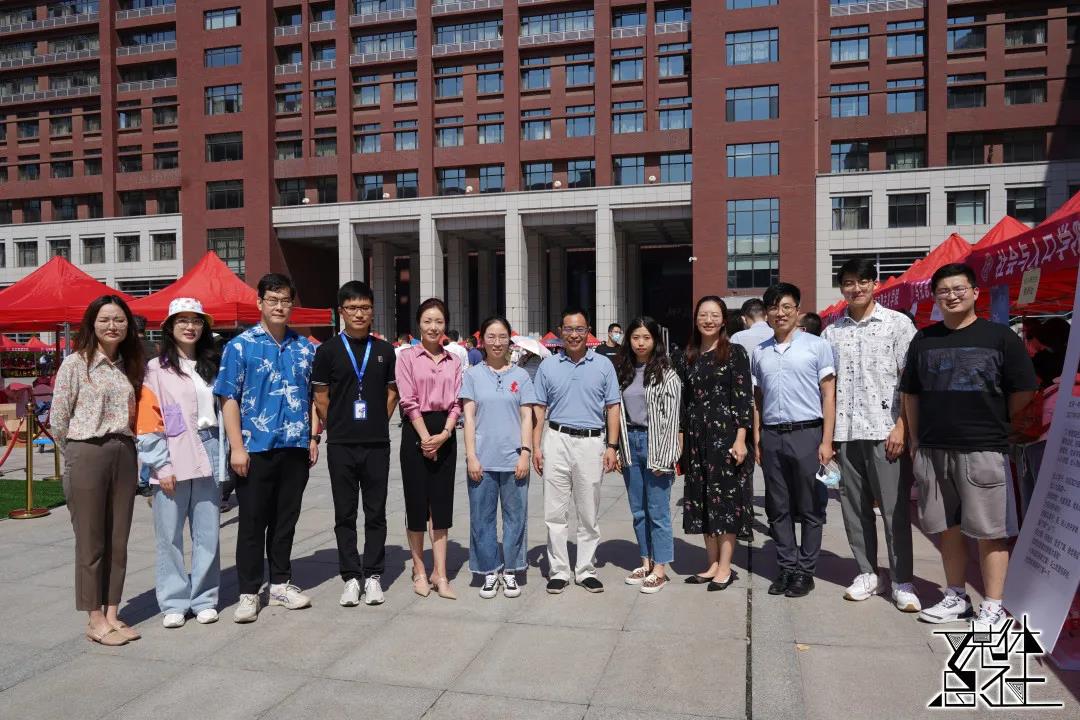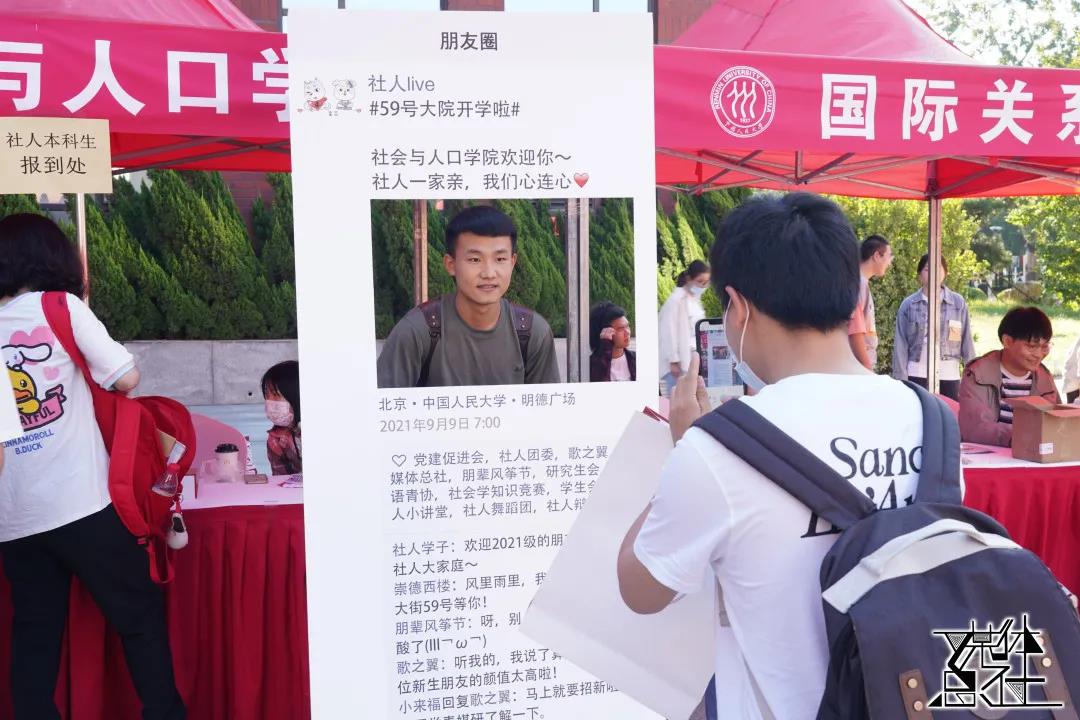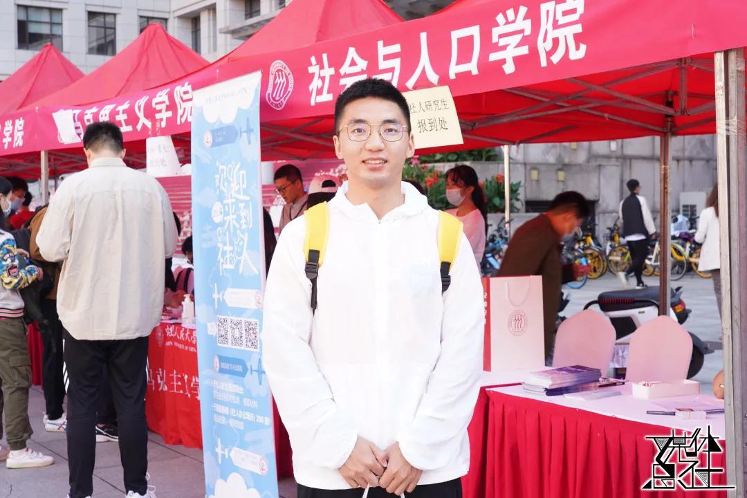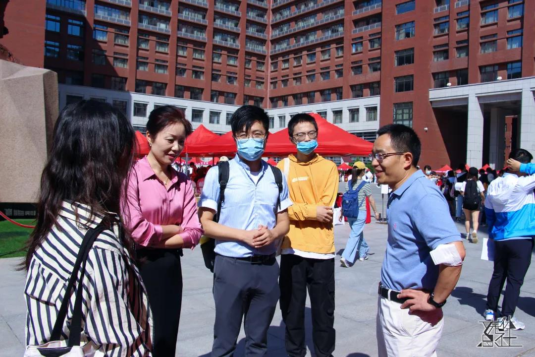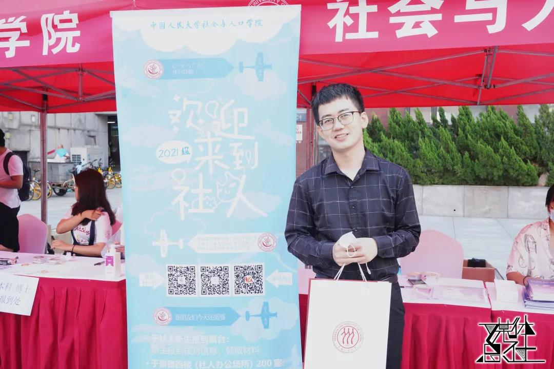 社会与人口公司经理冯仕政、党委书记高燕燕、党委副书记唐颖、团委书记张芷凌、新生班主任李龙、石磊在迎新台前同2021级本科新生亲切交谈。