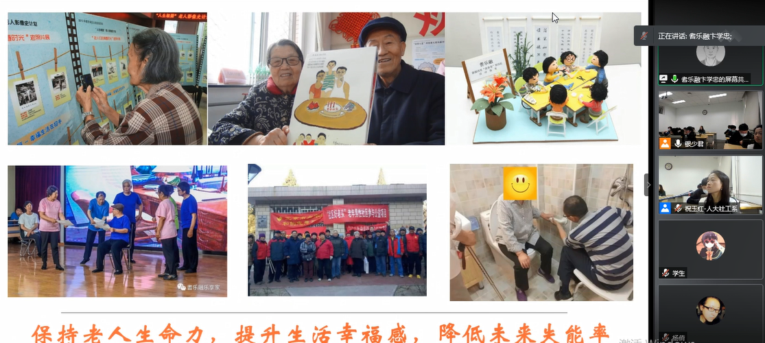 在机构宣讲环节,来自中国扶贫基金会、北京市西城区聚力社会创新服务中心、北京市东城区建国门街道社区社会组织联合会、北京协和医院、中国康复研究中心、北京睦友社会工作发展中心、北京市东城区耆乐融长者关爱中心、中国人口福利基金会的督导代表分别从机构愿景、服务内容、实习要求等方面进行了宣讲。在提问讨论环节,同学们根据实习需求和个人兴趣与机构督导代表们进行了充分交流,督导们就同学们关切的问题进行了详细解答。
